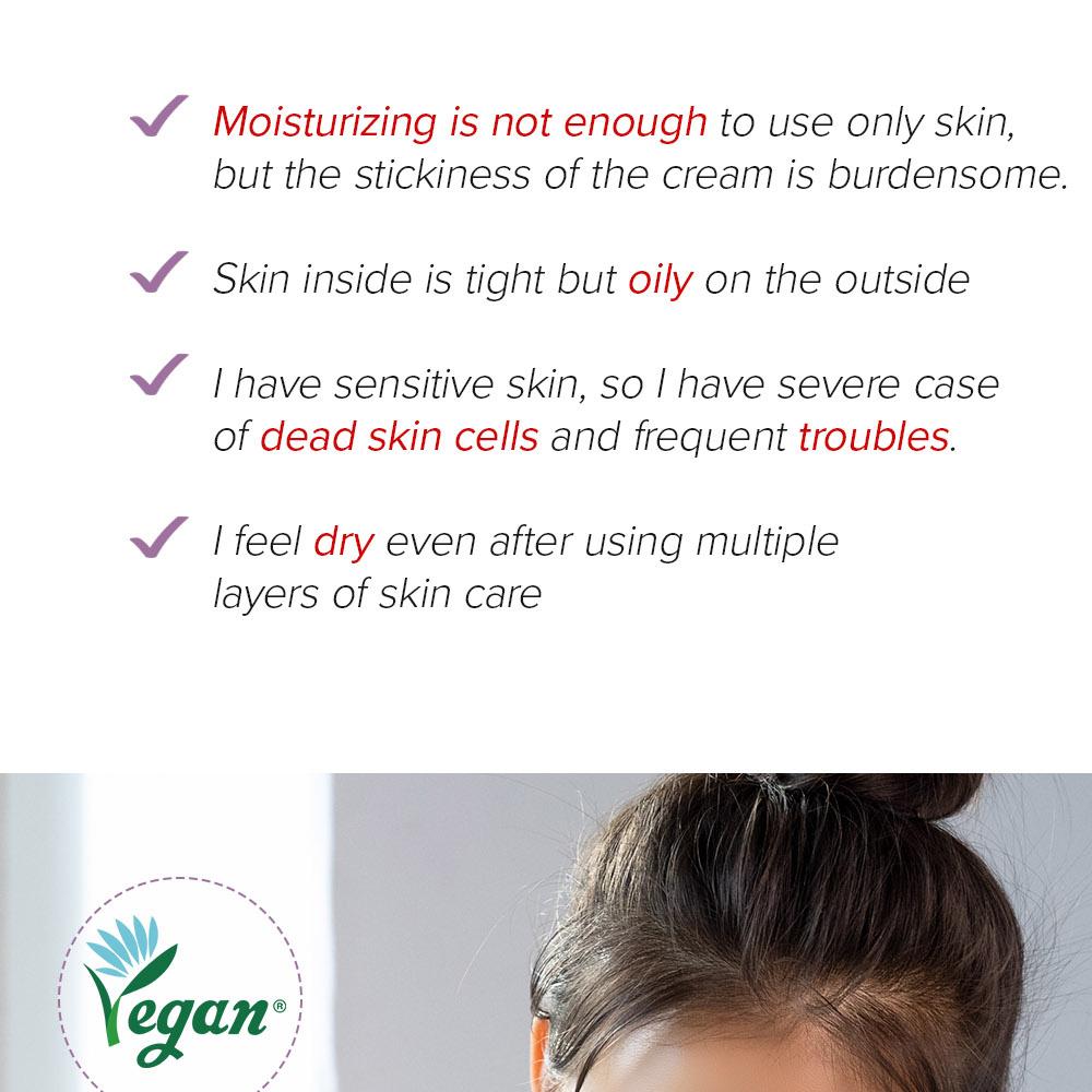 Зөөлөн, үнэргүй, харшил өдөөхгүй эссенц тул эмзэг арьсанд ч тохиромжтой бөгөөд цочирсон арьсанд сайн чийгшүүлэх арчилгаа өгнө.