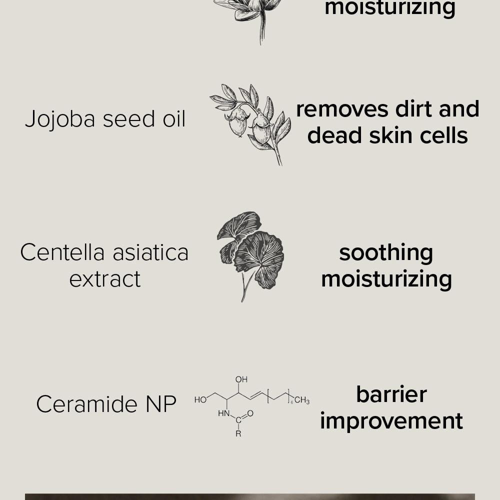 Jojoba seed oil болон Ceramide NP нь гэмтсэн арьсны хамгаалалтын давхаргыг бэхжүүлж, арьсыг хуурайшуулахгүйгээр чийгшүүлнэ.